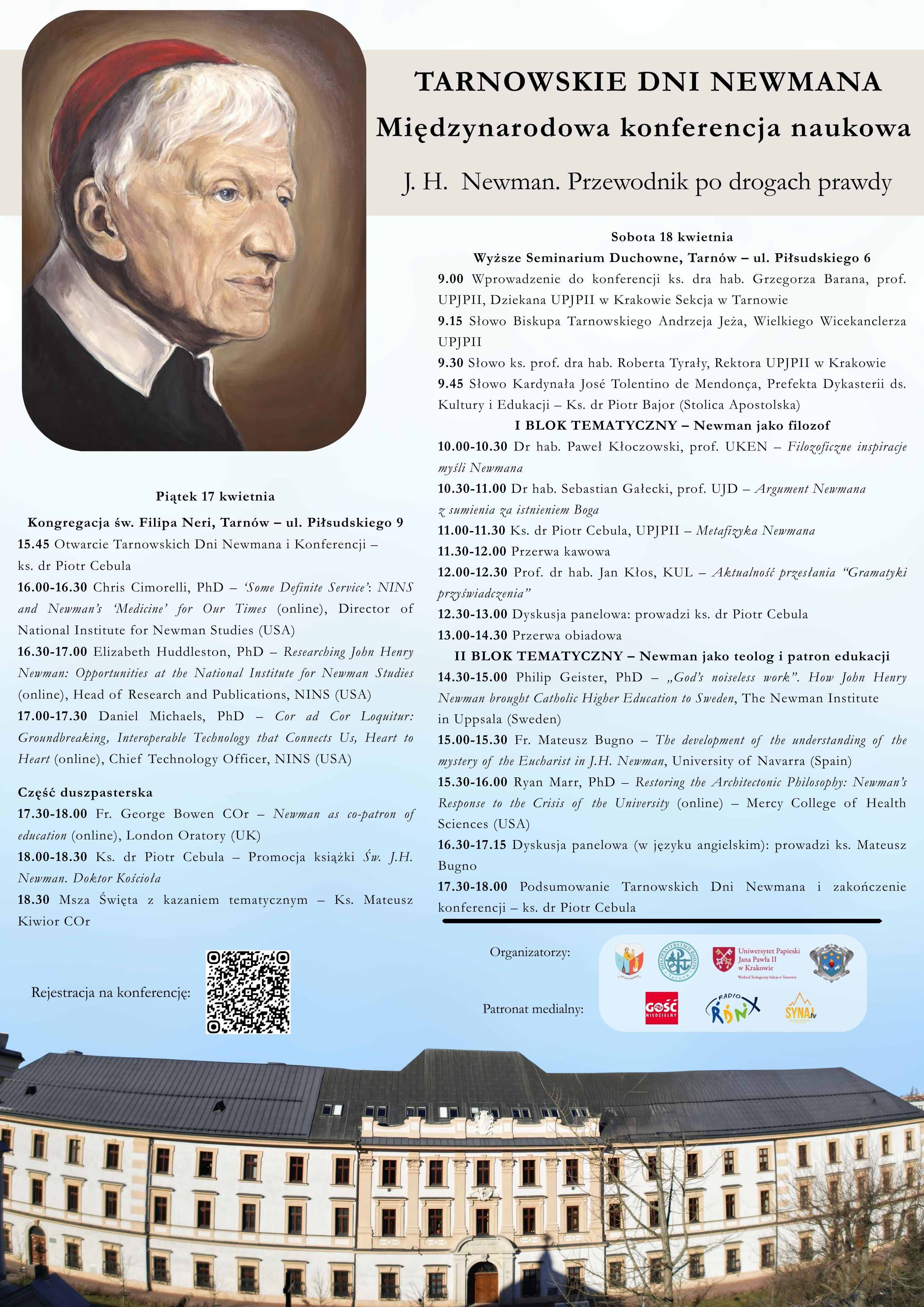 Rejestracja na konferencję jest obowiązkowa i dokonuje się poprzez elektroniczny Kwestionariusz Diecezji Tarnowskiej: Tarnowskie Dni Newmana/Tarnow Newman Days. Dostęp do linku z zapisem dostępny jest także poprzez kod QR umieszczony na plakacie wydarzenia.